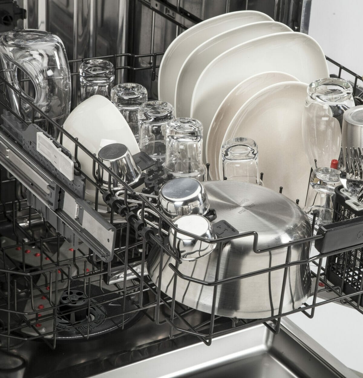 - Spacious Interior: The dishwasher’s interior is thoughtfully designed to accommodate a generous amount of dishes. Whether you have a load of dinner plates or a mix of pots and pans, there’s ample space to fit everything neatly. The adjustable racks make it easy to arrange your dishes efficiently.
